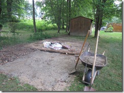 After having a nice breakfast this morning, we headed out to tackle removing the shed foundation.